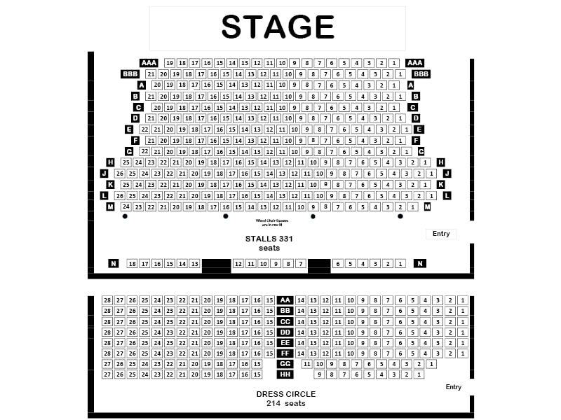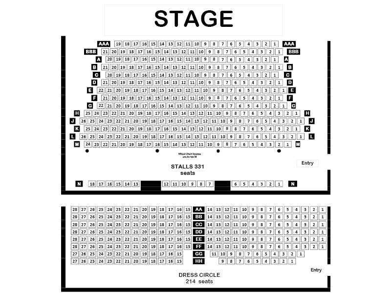 Additional front two rows added, AAA & BBB. Please see Seating Map.